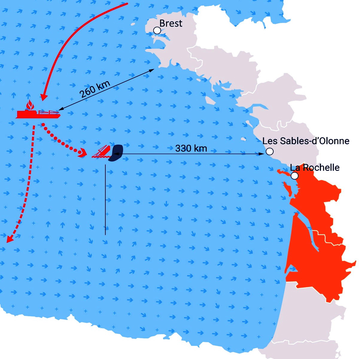 Il cargo Ro-Ro «Grande America» della compagnia napoletana Grimaldi Group proveniente da Amburgo e diretto a Casablanca (Marocco), da dove sarebbe poi proseguito con altri scali verso Dakar (Senegal), Conakry (Guinea) e Freetown (Sierra Leone) per poi concludere il viaggio in Brasile, è colato a picco martedì alle 14.26 a circa 333 km ad ovest della pittoresca cittadina medievale di La Rochelle sulla costa atlantica della Francia, dopo un’agonia di 2 giorni in seguito all’incendio che si era sviluppato domenica.