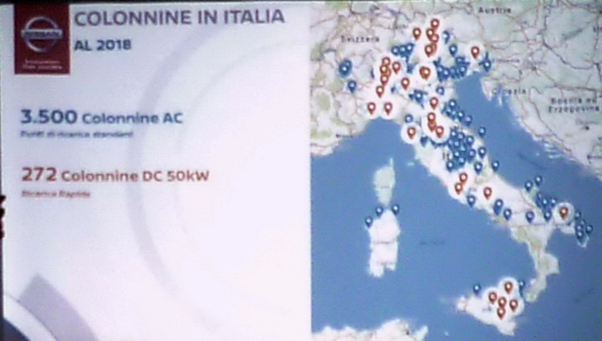 - Nissan ha promosso la creazione di una rete di Colonnine a ricarica rapida multistandard presenti attualmente in: