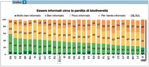 «Eurobarometro» sondaggio sulla Biodiversità. Domanda 3: “Quanto ti senti informato circa la perdita di biodiversità?” [Base del campione: tutti gli intervistati, % per nazione]