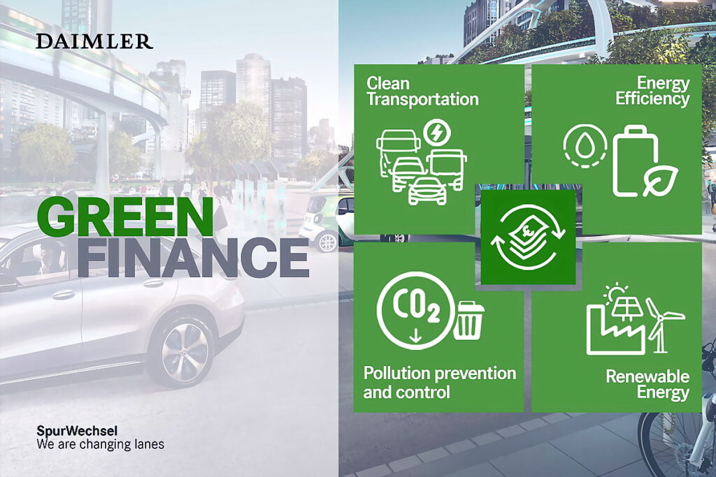 Nell’ambito della propria strategia a favore dell’ambiente Daimler AG, con il Green Finance Framework si pone l’obiettivo di emettere un’ampia gamma di strumenti finanziari come obbligazioni verdi e prestiti verdi e consentire agli investitori di partecipare ai suoi ambiziosi obiettivi in materia di sostenibilità dell’Azienda.