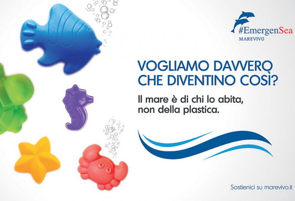 Gli animali marini trasformati in formine di plastica. Un’immagine provocazione lanciata da Marevivo che anche quest’anno propone la campagna in difesa del mare, domandando «Vogliamo davvero che diventino così?». La plastica si impossessa del nostro Mare, vitale polmone azzurro trasformato in discarica. Con lo slogan “Il mare è di chi lo abita, non della plastica” la campagna di Marevivo lanciata nell’ambito di #EmergenSeae realizzata da Docta Comunicazione, diventa un appello destinato a chi ha potere di intervenire ed agli utenti del mare. Scopo dell’iniziativa è infatti di sensibilizzare sul problema della marine litter, ed il messaggio diventa più persuasivo se a parlare sono le immagini.