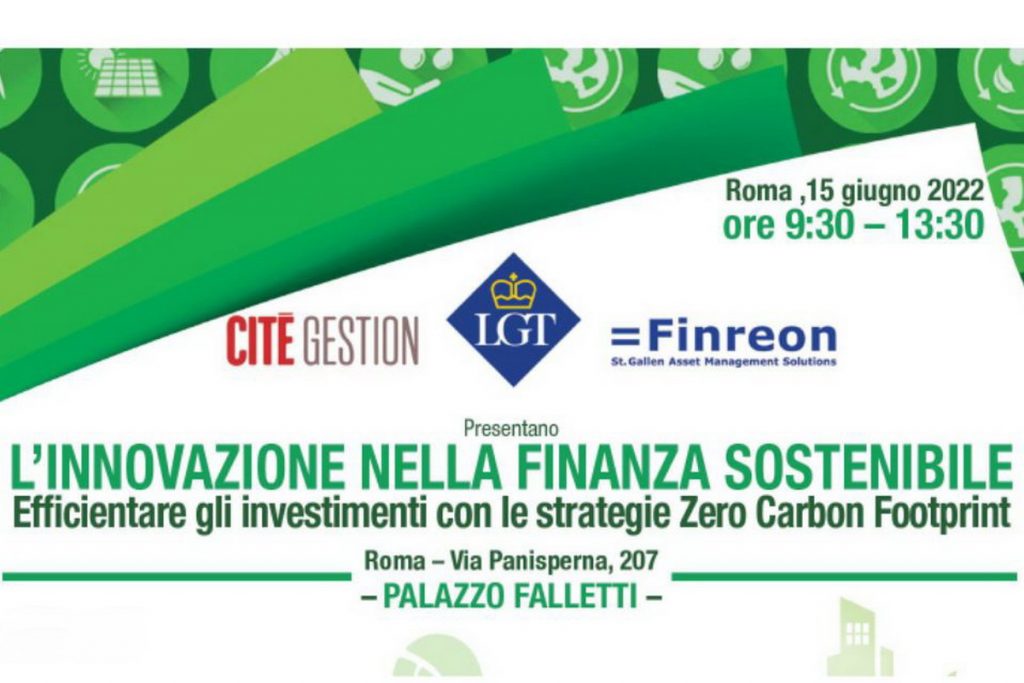 «L’Innovazione nella Finanza Sostenibile – Efficientare gli investimenti con le strategie Zero Carbon Footprint». A Roma il prossimo mercoledì 15 giugno il Convegno a Palazzo Falletti