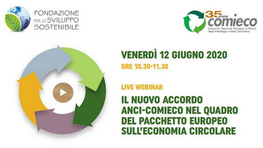 «Il nuovo accordo ANCI-Comieco nel quadro del pacchetto europeo sull’economia circolare», è il titolo del webinar tenutosi il 12 giugno 2020, organizzato da Comieco (Consorzio nazionale che garantisce il recupero e il riciclo degli imballaggi a base cellulosica provenienti dalla raccolta differenziata comunale) e Fondazione per lo Sviluppo Sostenibile con la partecipazione di ANCI, Conai e dell’on. Chiara Braga ed ha avuto l’obiettivo di proporre una valutazione sul nuovo Accordo Quadro e sul nuovo Allegato Tecnico relativo alla carta in vista del Pacchetto europeo sull’economia circolare in via di recepimento.