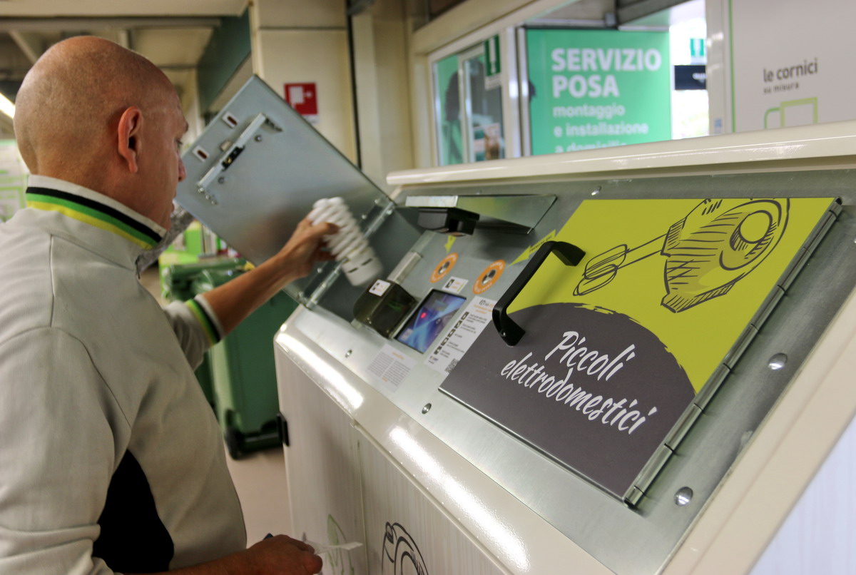 Un ruolo di supporto nell’ambito della Distribuzione ha permesso a Ecolight di raggiungere risultati importanti: nel 2017 il Consorzio ha erogato il servizio ritiro RAEE a oltre 2.800 punti vendita, arrivando a raccogliere circa 700 tonnellate di rifiuti elettronici. Inoltre Ecolight ha messo a punto una serie di soluzioni capaci di mettere i negozi nelle condizioni di rispondere agli obblighi normativi, in particolare l’«Uno contro Zero». Con l’Ecoisola RAEE il Consorzio ha studiato una nuova modalità di raccolta dei piccoli RAEE per grandi spazi commerciali. Si tratta di un cassonetto automatizzato dove, strisciando la propria tessera sanitaria, è possibile conferire il rifiuto, tracciandolo. E per lo svuotamento, è la stessa macchina che avverte i tecnici quando i contenitori interni sono quasi pieni. Un’altra soluzione firmata Ecolight si chiama RAEEbox. Si tratta di una sorta di «cestini» per i rifiuti elettronici di piccolissime dimensioni distribuiti in oltre 200 negozi. Per quanto riguarda i grandi elettrodomestici, in ottemperanza a quanto previsto dall’«Uno contro Uno», Ecolight ha predisposto un apposito servizio di consegna a domicilio con contestuale ritiro del vecchio per le principali catene della Distribuzione, indifferentemente dalle modalità di vendita: un negozio tradizionale o un operatore e-commerce.
