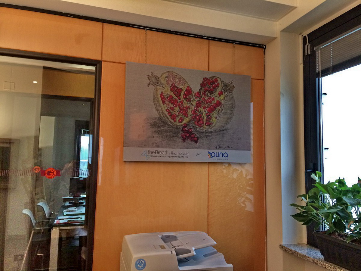Realizzati e personalizzati ad hoc e raffiguranti le immagini scelte dai dipendenti Guna, i pannelli sono stati appesi alle pareti in alcuni punti nevralgici degli spazi lavorativi. L’effetto estetico, le dimensioni e gli ingombri sono quelli di un qualsiasi altro quadro. “Ma il nostro intento, ovviamente, non era solo d’arredo. Guna produce medicinali omeopatici e dunque, per natura, ha a cuore il benessere delle persone. In primis quello dei nostri dipendenti e dei nostri collaboratori. L’idea di offrire loro la possibilità di lavorare, e quindi di vivere buona parte della giornata, in un ambiente sempre più sano e purificato ci ha subito conquistati.” dichiara Alessandro Pizzoccaro, fondatore e Presidente di Guna S.p.A.