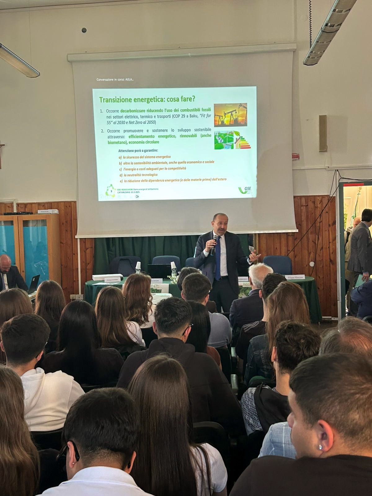 La giornata ha preso il via presso il Polo Tecnologico Professionale «GRIMALDI – PACIOLI» con il confronto «Il GSE incontra le Scuole». Dopo i saluti istituzionali di Elisabetta Zaccone (dirigente scolastico), Filippo Mancuso (Presidente del Consiglio regionale della Calabria) e dell’Assessore regionale all’Istruzione, Maria Stefania Caracciolo, il Presidente del GSE Paolo Arrigoni si è rivolto agli studenti introducendo i concetti di energia pulita e Comunità Energetiche Rinnovabili.