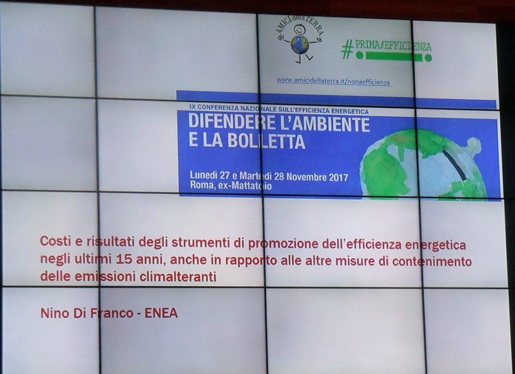 Alla IX edizione della Conferenza Nazionale sull’Efficienza Energetica degli Amici della Terra, che si sta tenendo al Dipartimento di Architettura dell’Università Roma Tre, l’intervento del Direttore aggiunto, ing. Nino Di Franco, dell’Unità Tecnica Efficienza Energetica di ENEA che ha voluto tra l’altro evidenziare il rapporto tra risparmio e efficienza energetica