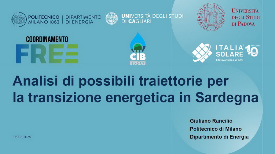 “Lo studio, elaborato da tre membri del Comitato Tecnico Scientifico di ITALIA SOLARE, evidenzia in modo rigoroso come, con una combinazione efficiente di fonti rinnovabili e sistemi di accumulo, sia possibile coprire integralmente i consumi elettrici della Sardegna. Il mix tecnologico proposto dimostra che la transizione verso un sistema elettrico 100% rinnovabile è tecnicamente fattibile e può garantire sicurezza, flessibilità e costi competitivi. La Regione ha tutte le condizioni per diventare un laboratorio avanzato di transizione energetica, puntando su fotovoltaico, eolico e accumuli. Occorre ora una visione politica chiara, capace di mettere al centro l’interesse dei cittadini e del territorio, superando ogni retorica contraria al cambiamento”, commenta Paolo Rocco Viscontini, Presidente di Italia Solare.