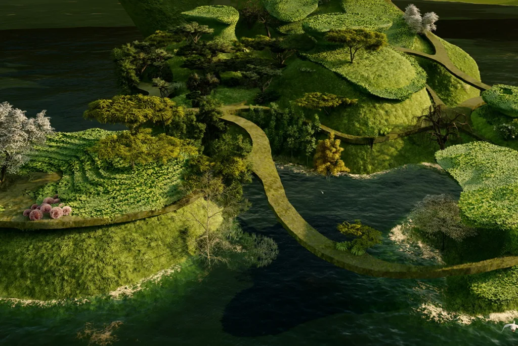 Il progetto mette al centro la sinergia tra uomo, architettura e natura, proponendo “spazi in movimento e in equilibrio, sempre in costante metamorfosi. Organismi viventi in dialogo con l’uomo, l’intelligenza artificiale e la natura“, secondo Migliore.