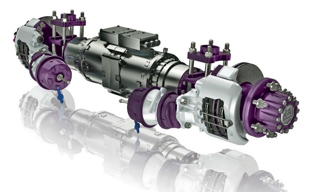 L’asse elettrico BPW e-Transport è costituito dalla combinazione di 2 sistemi ad alta tensione della BMW i3 alimentati da batterie agli ioni di litio da 84 kWh che trasferiscono sull’asse posteriore una coppia motrice di 6.580 Nm. A seconda delle esigenze di trasporto o di autonomia, si possono aggiungere altri pacchi batterie.