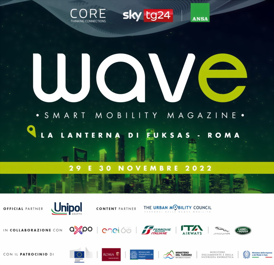 Un evento di due giorni – tenutosi il 29 e 30 novembre 2022 presso «La Lanterna» di Fuksas a Roma – per salutare il lancio della rivista trimestrale WAVE Smart Mobility Magazine (www.wavemobility.it), un organo di informazione destinato a scrivere pagine importanti sulle novità del comparto mobilità con un occhio attento a soddisfare le curiosità dei lettori. A parlare della «mobilità che verrà» saranno esperti e responsabili impegnati in prima fila nello sviluppo di nuovi mezzi, servizi e infrastrutture. Gli stessi a cui è stata data la parola nell’incontro di Roma, che ha rivolto uno sguardo alla mobilità del futuro e sostenibile attraverso l’intervento di rappresentati istituzionali, top manager di mobilità e trasporti.