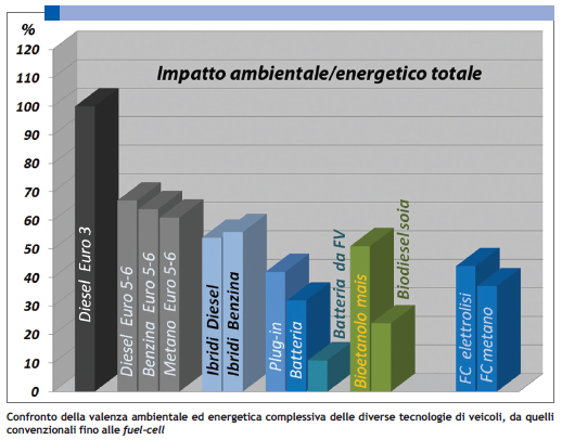 A questo punto il portafoglio di opzioni dietro l’angolo è davvero nutrito: motori endotermici Euro5 ed Euro6, metano, biocarburanti, fuel cell, batterie, ibridi, ibridi plug-in ricaricabili, tutti accomunati dentro la medesima etichetta di «ecologico », che suggerirebbe d’acchito un’immagine di condivisa qualità. Ma in realtà la valenza di ciascuna di queste opzioni può essere assai diversa, a seconda dei criteri considerati, che possono essere di volta in volta le emissioni di gas serra, i consumi petroliferi, o i costi sociali dovuti all’impatto delle emissioni locali sulla salute umana.