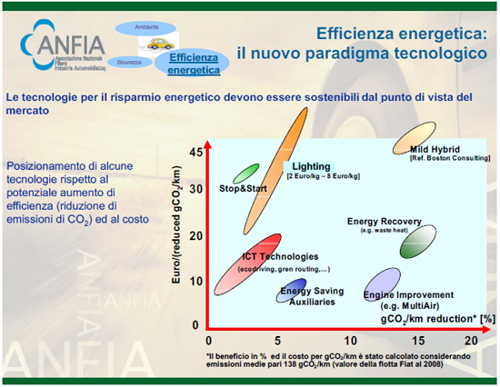 Il ruolo determinante dell’efficienza energetica per la riduzione delle emissioni è riconosciuto anche dall’Agenzia Internazionale per l’Energia (AIE). L’AIE stima in 8,2 giga tonnellate di emissioni di CO2 il potenziale di riduzione offerto dall’efficienza energetica entro il 2030, in uno scenario in cui il tetto alle emissioni di CO2 necessario per mantenere l’innalzamento della temperatura terrestre sotto i 2°C entro il 2030, è stimato in 26 giga tonnellate. In uno scenario di lungo periodo, inteso a dimezzare le emissioni al 2050, fatto 100 il valore totale della riduzione delle emissioni, il 36% sarebbe ottenibile proprio grazie ad un aumento dell’efficienza energetica negli usi. Nel medio periodo è comunque necessario e vitale promuovere il miglioramento dell’efficienza dei motori a combustione interna e, contemporaneamente, preparare il mercato (anche a livello di infrastrutture e normative) all’introduzione dei nuovi carburanti. L’impiego di miscele di metano e idrogeno in motori ad elevata efficienza, ad esempio, permette una graduale diffusione dell’idrogeno e produce benefici già nel breve periodo.