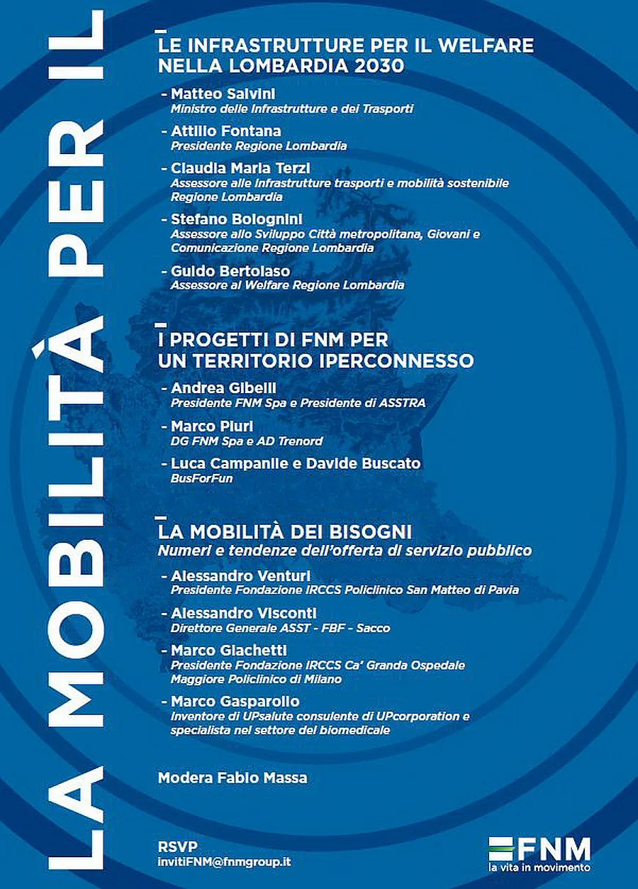 Domani 27 gennaio 2023 a Milano, alle ore 15.00, presso il Palazzo delle Stelline (Corso Magenta n.61) Sala Bramante, si terrà il convegno «La mobilità per il Welfare». La conferenza si pone l’obiettivo di esplorare l’integrazione sempre più necessaria tra mobilità e il mondo della salute, a partire dalle reali necessità di spostamento, soprattutto delle persone più fragili.