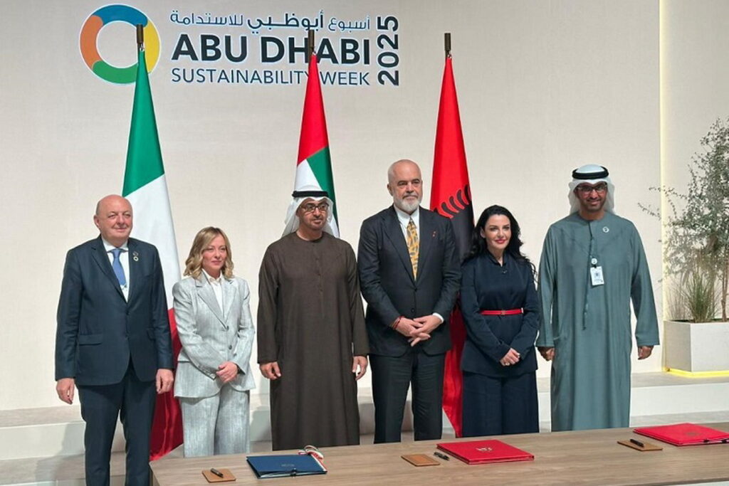 La sigla è avvenuta alla presenza della premier Giorgia Meloni, del primo Ministro dell’Albania Edi Rama e del Presidente degli Emirati Arabi Uniti Mohamed bin Zayed, a margine del Dialogo di Alto Livello sull’interconnettività delle reti che si tiene ad Abu Dhabi nel corso della Settimana della Sostenibilità.