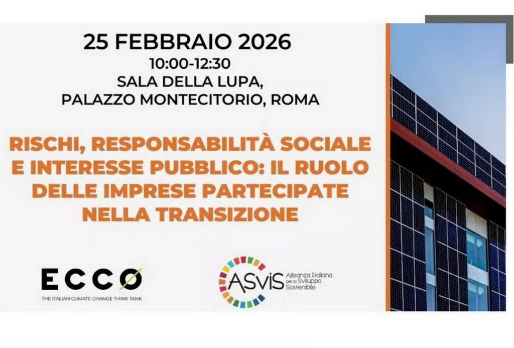 In un contesto economico e geopolitico segnato da tensioni internazionali e politiche protezionistiche, come evitare che le scelte delle aziende si orientino ancora verso investimenti in fonti fossili? È la domanda al centro del convegno «Rischi, responsabilità sociale e interesse pubblico: il ruolo delle imprese partecipate nella transizione», promosso da ASviS ed Ecco – il think tank italiano per il clima, che si svolgerà il 25 febbraio alle 10.00 a Roma presso la Sala della Lupa di Palazzo Montecitorio.