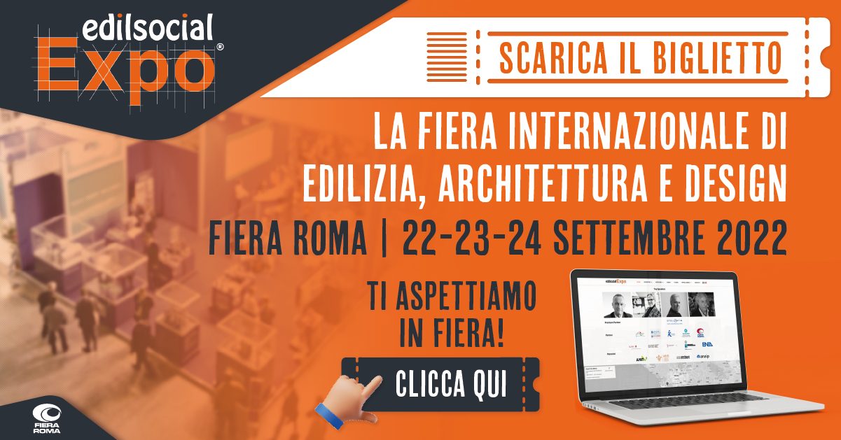 edilsocialExpo, l’esposizione internazionale di Edilizia, Architettura e Design alla Fiera di Roma dal 22 al 24 settembre; è la prima esposizione di settore pensata per connettere direttamente in fiera le aziende produttrici, i più importanti studi di progettazione internazionali e buyer.