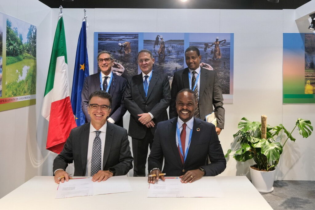 A Baku, Italia e Kenya hanno firmato il 14 novembre un accordo a valere sulle risorse del Fondo Italiano Clima (FIC), lo strumento istituito dal Governo italiano per finanziare progetti di contrasto al cambiamento climatico e a tutela dell’ambiente nei Paesi in Via di Sviluppo. Il finanziamento di 150 milioni di euro, destinato a iniziative per la mitigazione climatica e il rafforzamento della resilienza del Paese rispetto a tali rischi, è stato sottoscritto alla presenza del Vice-Ministro degli Affari Esteri e della Cooperazione Internazionale Edmondo Cirielli, del Sottosegretario di Stato al Ministero dell’Ambiente e della Sicurezza Energetica Claudio Barbaro e del Direttore Generale dell’Autorità Nazionale per l’Ambiente del Kenya Mamo Boru Mamo, e rientra tra le iniziative previste dalla Presidenza del Consiglio dei Ministri italiana nell’ambito del Piano Mattei. L’accordo è stato siglato da Paolo Lombardo, Direttore Cooperazione Internazionale allo Sviluppo di Cassa Depositi e Prestiti (CDP), gestore del Fondo, e dal Dr. Ing. Festus K. Ng’eno, Segretario Principale del Dipartimento di Stato per l’Ambiente e il Cambiamento Climatico del Kenya.