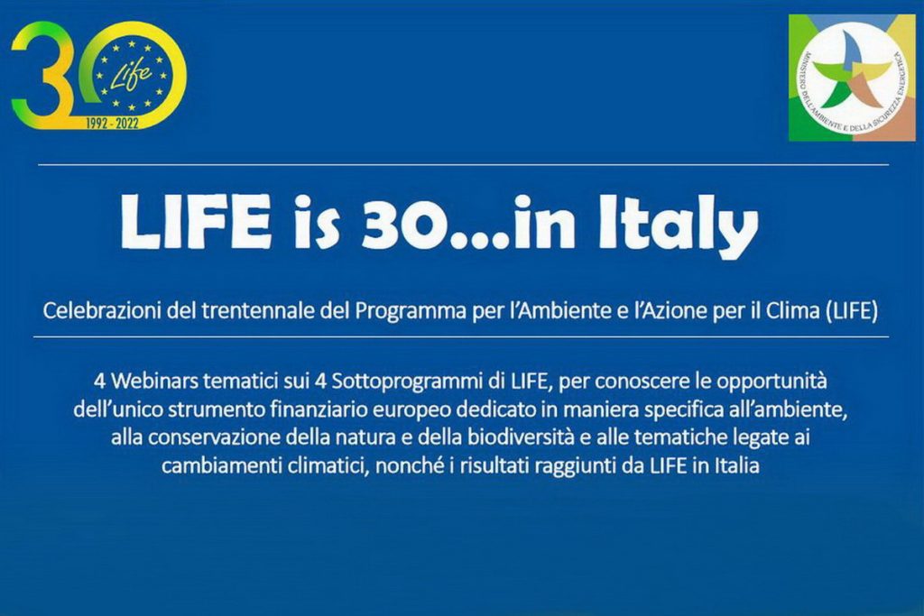 Per celebrare in Italia il 30° anniversario del Programma LIFE, il National Contact Point LIFE, operante presso la Direzione Generale «Affari Europei ed Internazionali» del Ministero dell’Ambiente e della Sicurezza Energetica (MASE), il dicastero ha organizzato un ciclo di 4 Webinars per far conoscere le caratteristiche e le opportunità dell’unico Programma europeo dedicato esclusivamente all’ambiente, alla natura e biodiversità e alle tematiche legate al cambiamento climatico (incluse l’efficienza energetica e le energie rinnovabili), nonché per approfondire talune esperienze di progetti co-finanziati dalla Commissione europea nel nostro Paese.