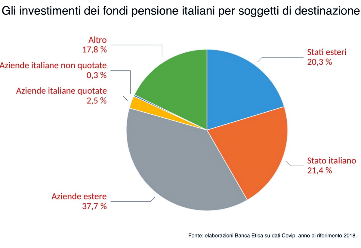 Un ruolo cruciale per la crescita della finanza etica e dei suoi effetti benefici su lavoro, ambiente e diritti potrebbero averlo i fondi pensione. Le ingenti risorse finanziarie gestite dalla previdenza complementare in Italia potrebbero essere uno strumento formidabile per sostenere lo sviluppo dell’economia reale nel rispetto dell’ambiente e per alimentare un durevole patto intergenerazionale. Ma oggi questo non avviene: di 100 euro gestiti dalla previdenza complementare, solo 24 restano nel nostro territorio e solo 3 vanno a finanziare imprese e attività produttive. Questo approccio sta soffocando quello che avrebbe dovuto essere il circuito virtuoso che, tramite la previdenza integrativa, potrebbe favorire gli investimenti e con essi lo sviluppo del tessuto produttivo del paese, creando occupazione che a sua volta produce risparmio per alimentare nuovi investimenti. E’ quanto emerge da uno studio di Banca Etica, illustrato dal direttore generale, Alessandro Messina.