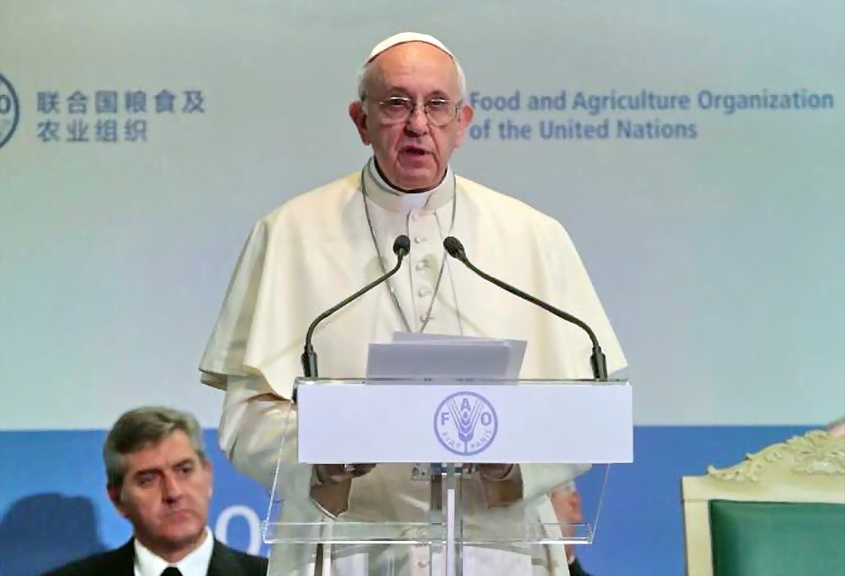 “È chiaro che le guerre e il cambiamento climatico sono causa di fame, quindi non presentiamo la fame come se fosse una malattia incurabile”, ha detto il Pontefice nel suo intervento di apertura della cerimonia, che quest’anno ha come tema principale la necessità di investimenti in sicurezza alimentare e sviluppo rurale per affrontare l’emigrazione.