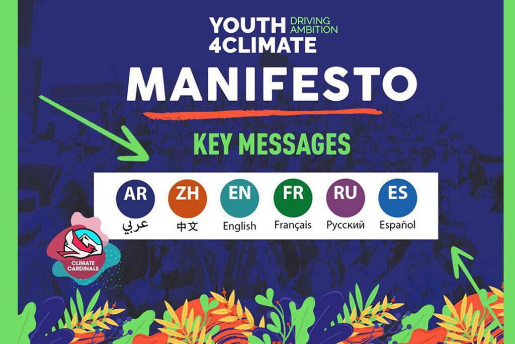Le traduzioni sono state commissionate dalla co-chair del Climate Conscious Society Working Group dello «Youth4Climate», Sophia Kianni, attraverso la Climate Cardinals, una Ong internazionale che si occupa di rendere l’educazione sui temi ambientali più accessibile a coloro che non parlano inglese traducendo le informazioni sul clima in più di cento lingue.
