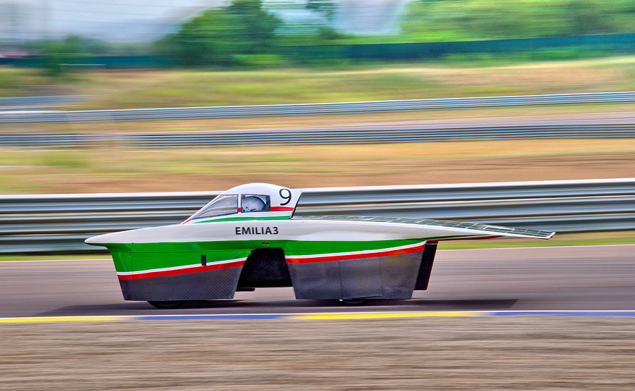 Il risultato è ancora più straordinario se si considera che la macchina è stata realizzata con un budget, in termini di cash, molto vicino allo zero. Per questo, nel bene e nel male, Emilia 3 può essere considerata anche l’archetipo di come va la ricerca scientifica e lo sviluppo tecnologico italiano: riusciamo ad avere risultati di primissimo piano a livello internazionale, risultati quasi incredibili considerando il confronto tra le risorse messe in campo dal «sistema Italia» rispetto a quelle a cui possono solitamente accedere i nostri colleghi/concorrenti all’estero. Emilia 3 nasce e si sviluppa infatti grazie ad una rete di collaborazioni tra il Cnr-ISMAR, che ha progettato lo specifico sistema fotovoltaico utilizzando la tecnologia Solbian già largamente utilizzata nella nautica, i Dipartimenti di Ingegneria elettrica e meccanica dell’Università di Bologna che si sono occupati della meccanica e della parte elettrica e elettronica e una galassia di piccoli imprenditori emiliani che sono legati al mondo produttivo delle automobili da competizione che proprio nella zona Emiliana trova la sua eccellenza a livello mondiale.