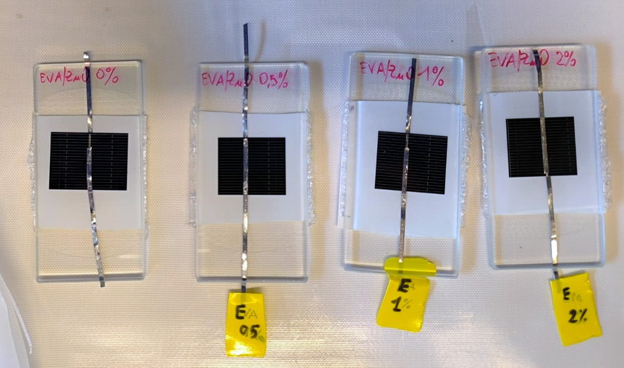 Questi materiali plastici si distinguono per la straordinaria trasparenza ai raggi UV, una caratteristica che consente di sfruttare una porzione più ampia dello spettro solare, migliorando così la resa energetica complessiva dei pannelli. Nei test comparativi, mini-dispositivi fotovoltaici rivestiti con diversi tipi di film – EVA, POE e TPO – sono stati sottoposti a invecchiamento accelerato[2] fino a una dose di 1.800 kWh/m² per simulare anni di esposizione solare e valutarne durabilità e prestazioni elettriche.