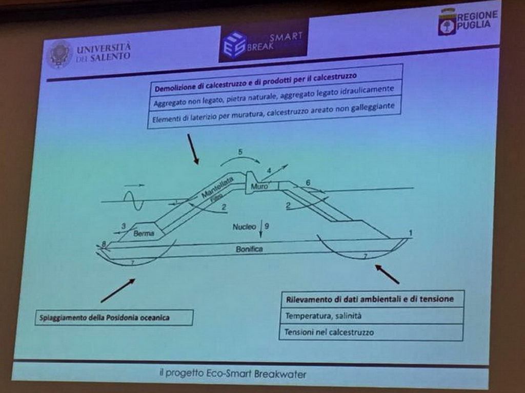 Il Progetto «ECO-SMART Breakwater» punta alla realizzazione di un composto di calcestruzzo cementizio realizzato riciclando la posidonia oceanica spiaggiata e gli scarti lapidei derivanti dalle attività di costruzione e demolizione. Nato dalla collaborazione tra il Dipartimento di Ingegneria dell’Innovazione dell’Università del Salento, Federbalneari Salento e il Centro di Ricerche CETMA, «ECO-SMART Breakwater», presentato alla stampa a Roma lo scorso 3 ottobre, presso il Consiglio Superiore dei Lavori Pubblici Ministero delle Infrastrutture e dei Trasporti è finanziato dalla Regione Puglia. Hanno partecipato alla presentazione: ing. Donato Carlea, Presidente del Consiglio Superiore dei Lavori Pubblici, prof. ing. Antonio Ficarella, Direttore del Dipartimento di Ingegneria dell’Innovazione dell’Università del Salento, prof. Francesco Saponaro, Presidente CETMA, ing. arch. Raffaele Giampetruzzi, Direttore Tecnico, Athanor Consorzio Stabile, prof. ing. Giuseppe Roberto Tomasicchio, Ordinario nel Dipartimento di Ingegneria dell’Innovazione dell’Università del Salento, ing. Wanda Arena, Marketing & Project Manager, CETMA, ing. Orazio Manni, Senior Director, RINA, dott. Giovanni Coppini, Direttore della divisione OPA, Centro Euro-Mediterraneo sui cambiamenti climatici, prof. ing. Domenico Laforgia, Direttore del Dipartimento Sviluppo Economico, Innovazione, Regione Puglia e dott. Mauro Della Valle, Presidente Federbalneari Salento.